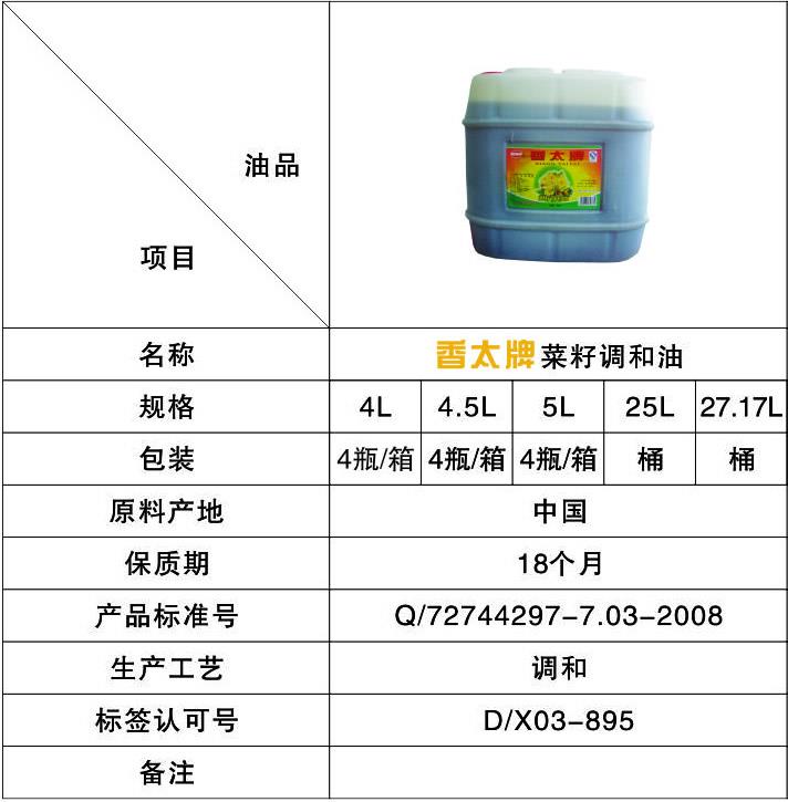 下一篇: 香太牌清香菜籽調(diào)和油